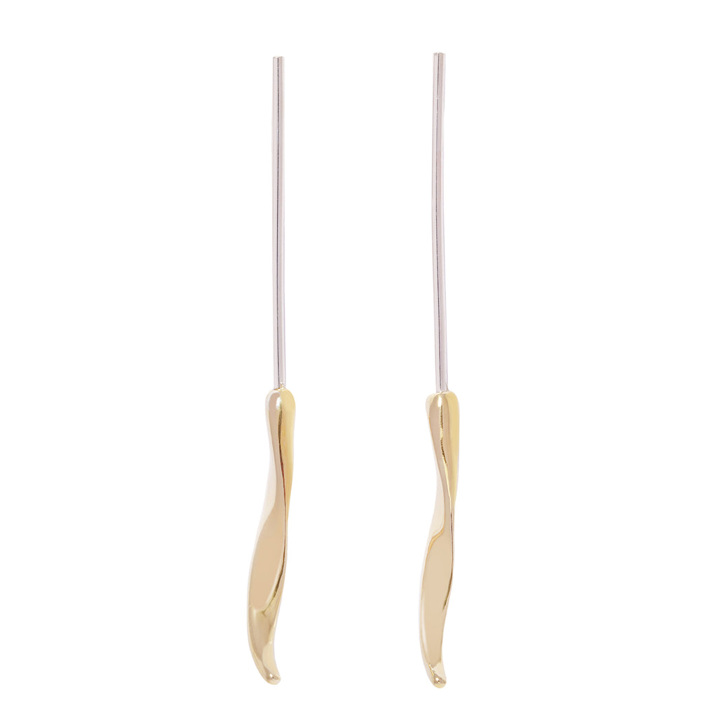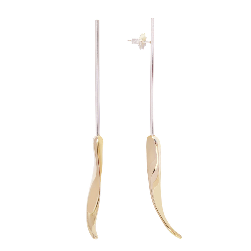 Sleek and modern, the mixed-metal Ray stud drop earrings feature a drip of fluid bronze suspended from a length of sterling silver. Both architectural and organic, these statement earrings are dramatic in length and impact, yet lightweight for everyday wear.