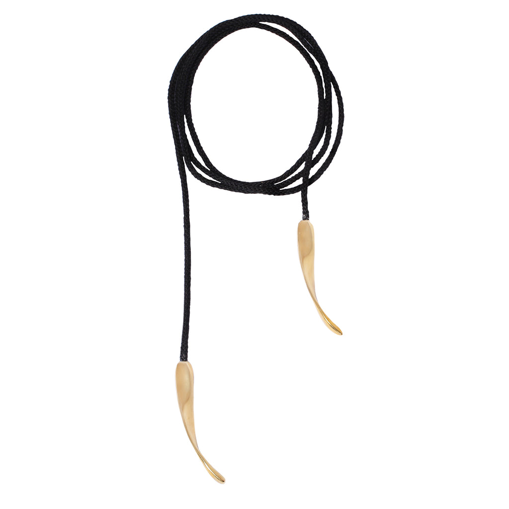 The 90s cord necklace got the most glorious makeover! Part rockstar, part urban cowgirl, part gothic drama, this luscious length of Japanese silk cord brings the edge and the glam to any outfit. Wrap it around your neck and let the ends hang, loop it around and tie as a lariat, wear it as a bow at your throat, or knot it at your back and let it swing as you make the most dramatic exit ever. Whatever your heart desires. You can even wrap and tie at your wrist as a bracelet!