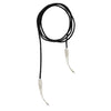 Fluid metal finials at each end of the cord add further visual interest and a delicious swing as the cords sway against the body. They are smoothly carved to fit perfectly under the thumb to rub when you find yourself needing your own personal talisman.